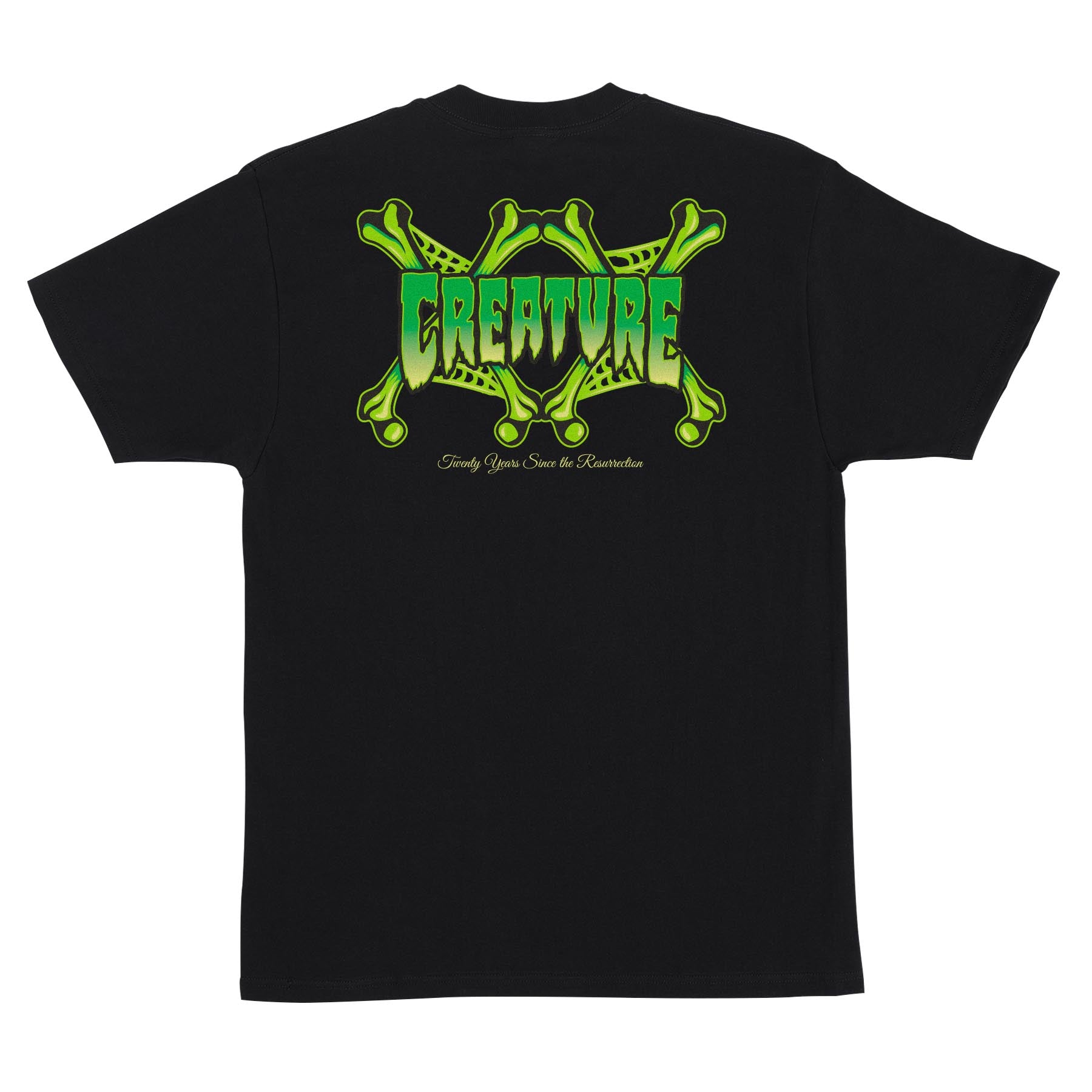 The Creature Still Dead XX men's regular fit short-sleeve t-shirt features small front and large back Creature Still Dead XX printed in soft hand ink.