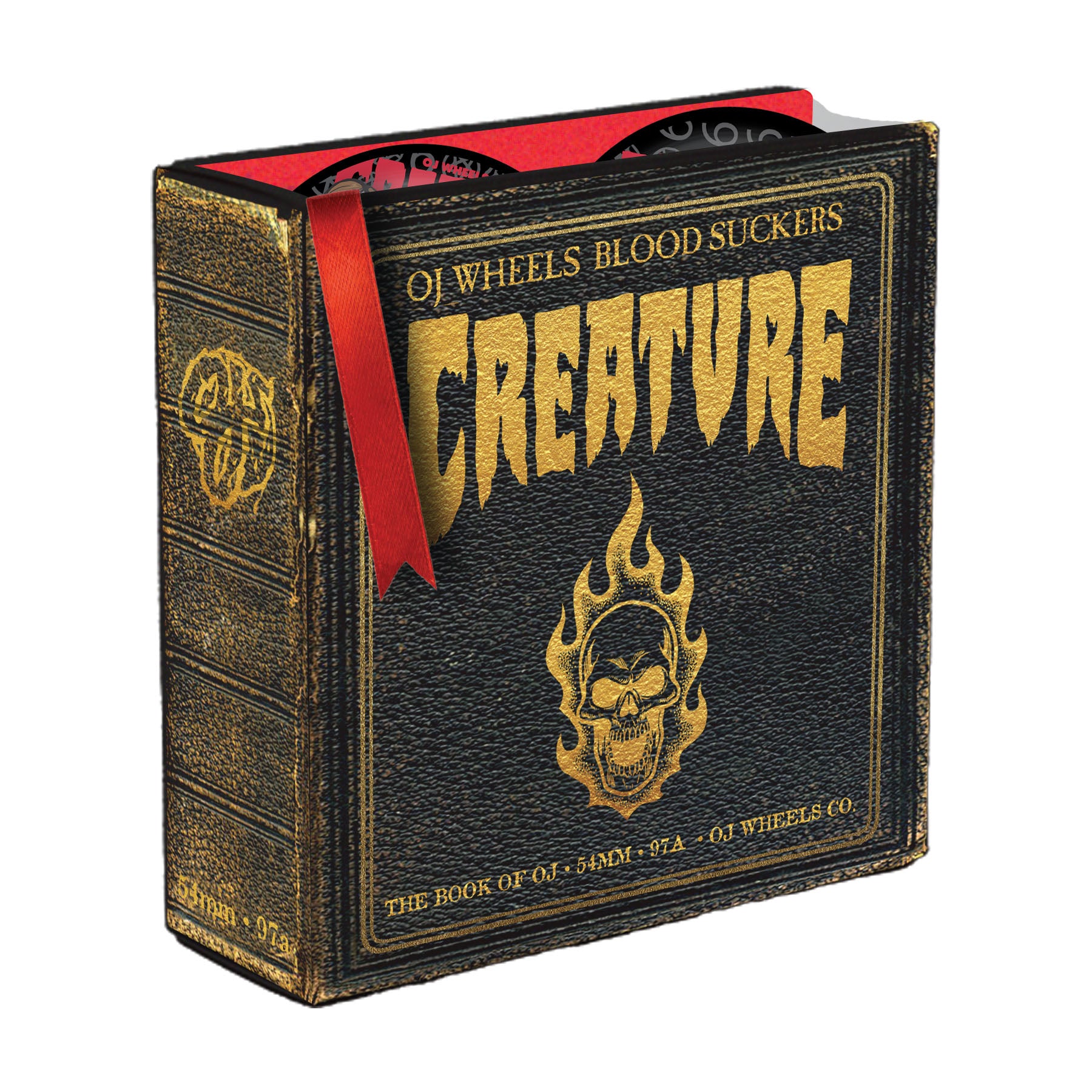 OJ Wheels The Book of Bloodsuckers 54mm, 97a Black Hardline wheels. Custom Book Of OJ packaging.